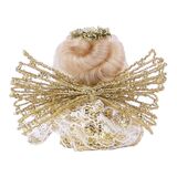MATERIALS: lace, gold tone bell, white ribbon, doll hair, gold tone wire, wooden ball