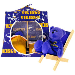 Purple Toy Play Pop Up Tent, 2 Sleeping Bags, Minnesota Vikings Print Fabric for Stuffed Animals, Action Figures, Dolls listed in: